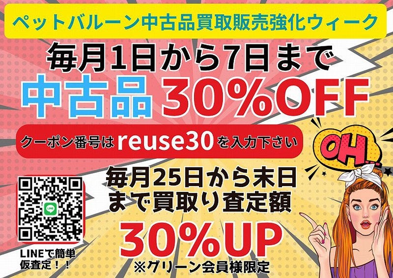 🗓️ 毎月1〜7日:中古商品 30%OFFセール