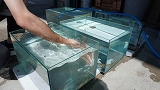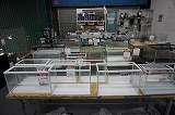 水槽は屋外で水漏れチェック、フィルター・照明は通電確認、ポンプ類は動作音までチェック。