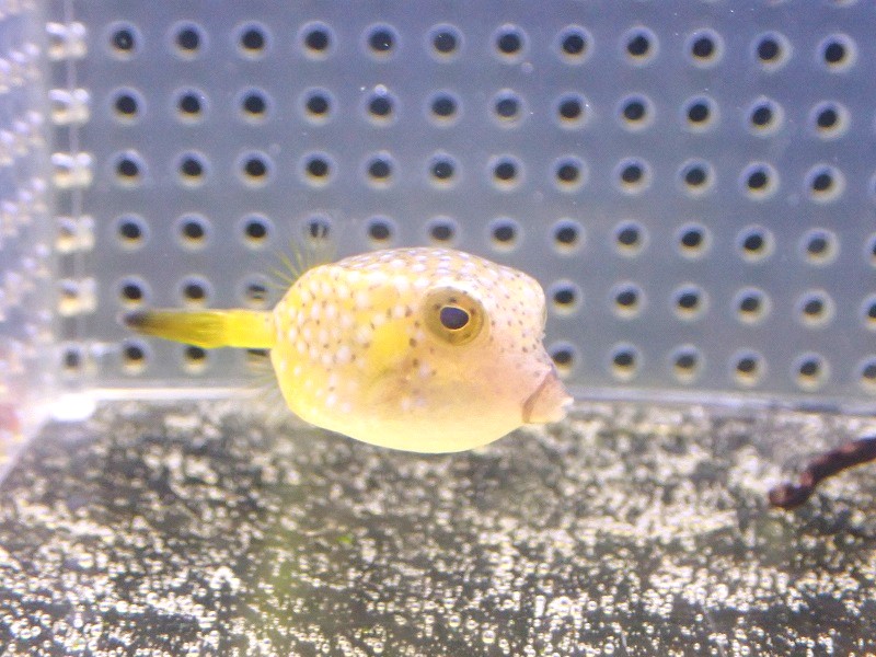大人気!可愛いサイズのハコフグです。冷凍ブラインシュリンプや乾燥エビなどから与えると餌付けは容易です。