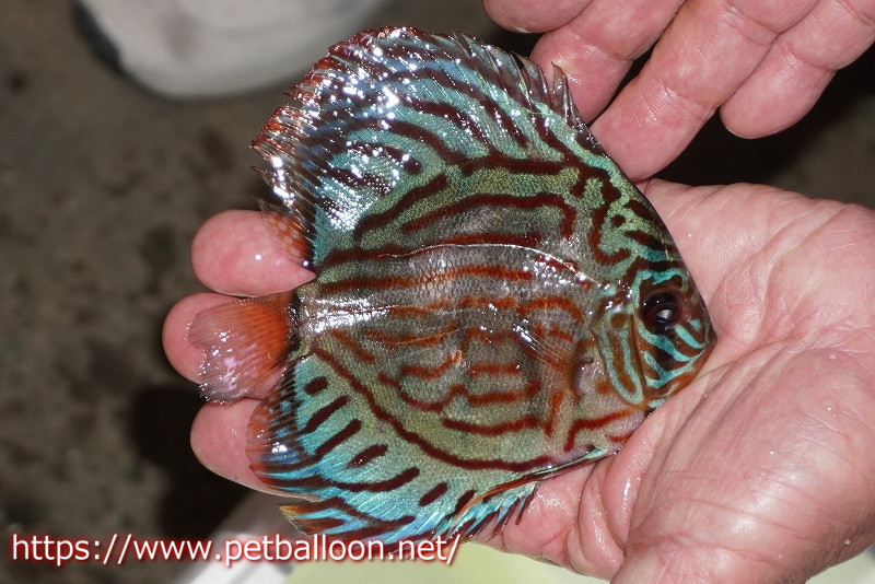 ワイルド トロンべタスロイヤルオス個体とソリッドブルーのターコイズメス個体を交配したワイルドクロスのディスカスとなります。メス親の美しい青みを引き継ぎながらソリッド個体にロイヤル個体を交配したことでオス個体のロイヤルラインが絶妙にバランスよく表現されております。