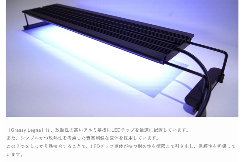 製品の特徴大切な生き物にやさしい光Grassyシリーズの特徴を引き継ぎ、光合成の適応を高める高演色LEDを採用!豊かな色彩表現を可能にする高品質のRGB素子を採用。(Freshモデル)植物の光合成を促進する、高演色ホワイトとUV410nmのLED素子を組み合わせて搭載。簡単なワンタッチタイマー(6H/8H/10H)搭載し、好みの色に合わせて使用可能!