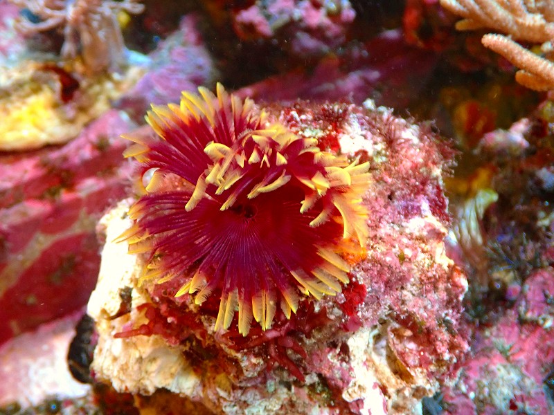 美しい鰓冠(さいかん)を持つ、ケヤリムシの仲間です。