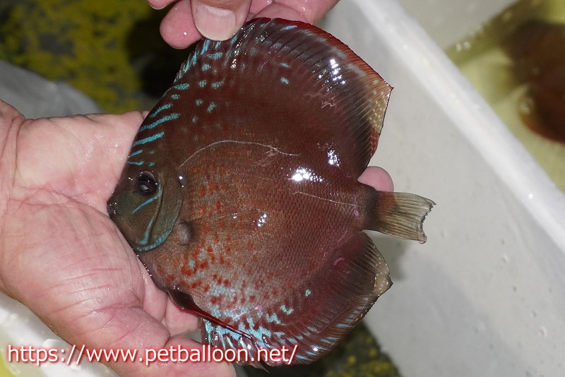 ワイルドディスカスのラーゴパラコニブラッドレッドの血統を活かしたワイルドF2個体。にじみ出る血のような独特の赤みを帯び、ワイルドディスカスらしさを残したレア個体です。