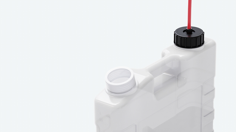 スリムで少ない床面積に設置ケーブルとチューブを通せる特製キャップ水量の目盛りが刻まれた半透明なプラスチックボディ高さ55cm幅9cm奥行44cm