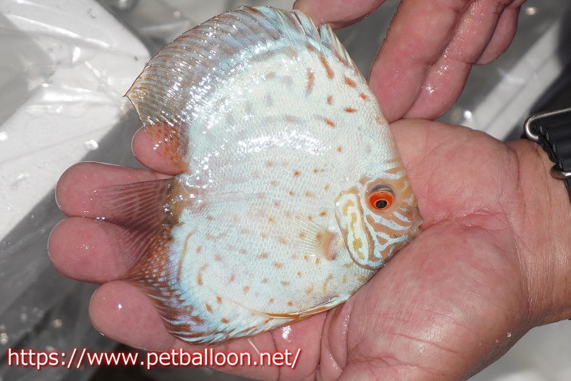 改良品種ディスカス大国のマレーシア・ペナン島屈指のブリーダーTAN CHEE LOK氏の作出したディスカスとなります。氏のファームはその規模、質、生産力どれも世界屈指のレベルとだけあり素晴らしいディスカスを多数保有しております。こちらの品種は白とも青ともつかぬ独特の上品な発色とラインパターンを持つ品種となります。