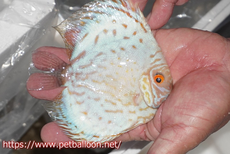 改良品種ディスカス大国のマレーシア・ペナン島屈指のブリーダーTAN CHEE LOK氏の作出したディスカスとなります。氏のファームはその規模、質、生産力どれも世界屈指のレベルとだけあり素晴らしいディスカスを多数保有しております。こちらの品種は白とも青ともつかぬ独特の上品な発色とラインパターンを持つ品種となります。