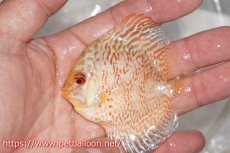 改良品種ディスカス大国のマレーシア・ペナン島屈指のブリーダーTAN CHEE LOK氏の作出したディスカスとなります。氏のファームはその規模、質、生産力どれも世界屈指のレベルとだけあり素晴らしいディスカスを多数保有しております。非常に派手なレッドラインがボディーを覆う非常に美しいピジョン系改良品種となります