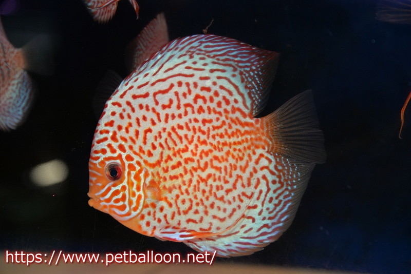 改良品種のレッドスポットグリーンにワイルドロイヤルグリーンを交配した品種となります。ワイルドディスカスらしいイエローベースと鮮やかなレッドスポットが魅力的な個体となります。