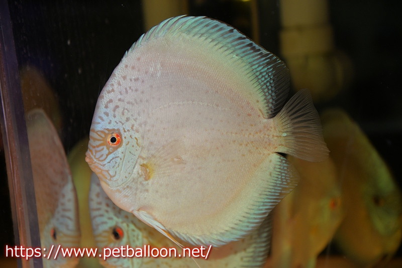 初入荷の新しい品種です。一見ブルー系ディスカスの品種とも思えるこの個体はスポット系ディスカスの血統も持ち合わせており、うっすらと入るスポットの面影はよりブルーの発色を進化させたスポット系統。鮮やかなブルーンのベースカラーにスポットが入るこれまで見たことが無い新しい品種です。