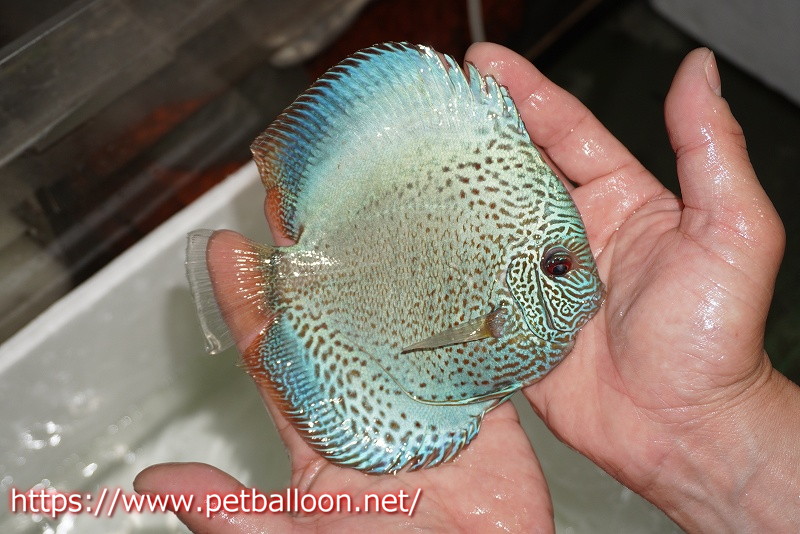 ブルーベースに上品に入るスポット。鮮やかなブルーカラーが非常に美しくそこに入るスポットパターンが非常に美しいスネーク系ディスカス。