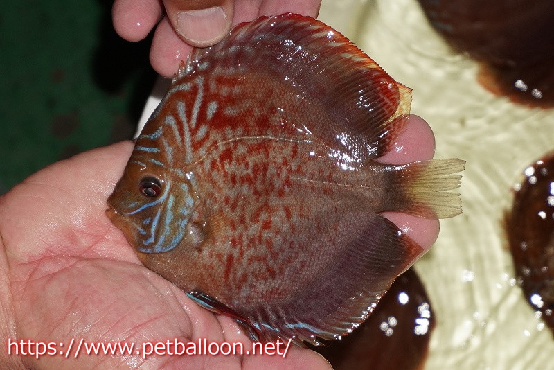 ワイルドディスカスのラーゴパラコニブラッドレッドの血統を活かしたワイルドF2個体。にじみ出る血のような独特の赤みはレッドパッチタイプとしてより進化を遂げています。ソリッドレッドとは一味違ったより派手な発色となるでしょう。