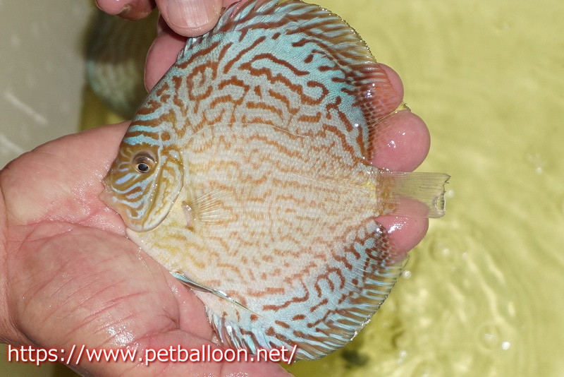 青系ディスカスの王道ブリリアントの中でもこれほど発色良くバランスが良い個体は早々おらずフォルム良し、発色良しと文句なしの個体と言えます。今後よりその青みは増しパターンも相まって変化してゆくので非常に楽しみある個体です。