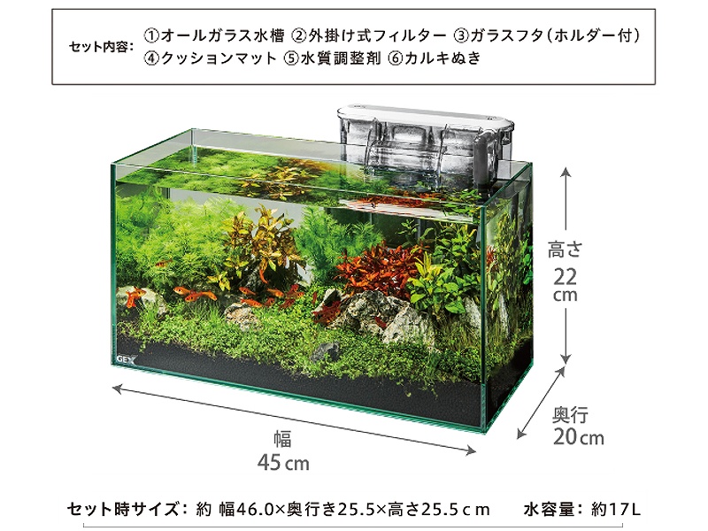 ・水槽サイズ:約幅45×奥行20×高さ22cm
