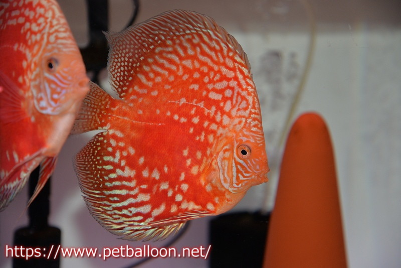 明るくど派手な赤の発色を持つボディにパール状のホワイトカラーのパターンを持つピジョン系の品種です。まだ若く今後の変化の楽しみはもちろん素晴らしい体型を持つ個体です。