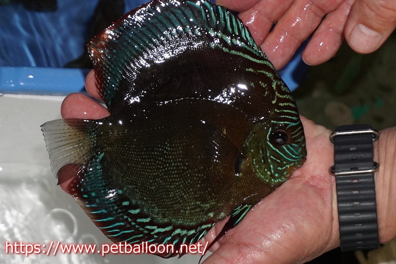 誰もが知る唯一無二のカリスマ、広島B-HOUSE倉津氏が20年以上の歳月をかけて作出した究極かつ唯一無二の完全オリジナルメイドインジャパンディスカス。単純にワイルドレッドディスカスのみを交配したのではなく全てのワイルドディスカスからの交配で作出されており、その赤の深さ、ブルーのラインや発色は意図して創られた究極のディスカスです。氏が話されていたブリーダーではなくデザイナー、アーティストという感覚で鱗の輝きや色質を考え作られたことはこのディスカスを見れば十分に納得いただけると思います。それほどに奥深く、長年交配されてきた完成されたこのディスカスからは他にはないオーラを感じます。早々世の中に出回ることが無い大変貴重な個体です。