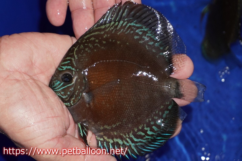 誰もが知る唯一無二のカリスマ、広島B-HOUSE倉津氏が20年以上の歳月をかけて作出した究極かつ唯一無二の完全オリジナルメイドインジャパンディスカス。単純にワイルドレッドディスカスのみを交配したのではなく全てのワイルドディスカスからの交配で作出されており、その赤の深さ、ブルーのラインや発色は意図して創られた究極のディスカスです。氏が話されていたブリーダーではなくデザイナー、アーティストという感覚で鱗の輝きや色質を考え作られたことはこのディスカスを見れば十分に納得いただけると思います。それほどに奥深く、長年交配されてきた完成されたこのディスカスからは他にはないオーラを感じます。早々世の中に出回ることが無い大変貴重な個体です。