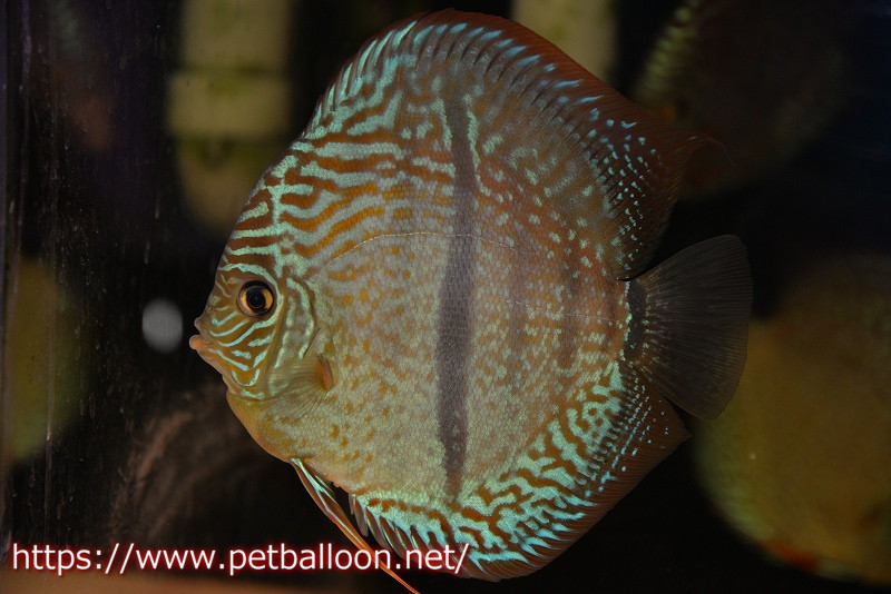 これぞ究極のワイルドクロスディスカス。ワイルドヤムンダロイヤルブルーとヤムンダブルームーンを交配し累代繁殖した品種です。ヤムンダロイヤルブルーの理想的なフォルムとレッドラインとベースカラー、ヤムンダブルームーンのブルーの発色に加えセンターバーを持った極上ワイルドクロス個体です。