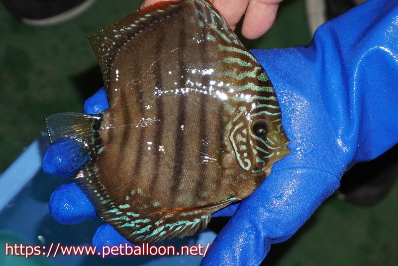 これぞ究極のワイルドクロスディスカス。ワイルドディスカスの有名産地であるラーゴパラコニブラッドレッドをワイルドヘッケルと交配することでパラコニらしいフォルム、ベースカラーに加えはっきりと明瞭に入るセンターバーを持つ今年度最新品種です。ややラインの表現やヘッケルの持つブルーの発色もあり成長ごとの変化が楽しみな個体と言えます。