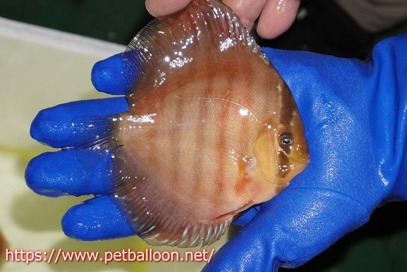 これぞ究極のワイルドクロスディスカス。アマゾン河トロンべタス水系のラーゴイリピシブラッドレッドを交配したワイルドF4個体です。イリピシ独特の赤みと美しいラウンドボディを持つ特選個体。その赤みは今後どんどん増してゆくことでしょう。