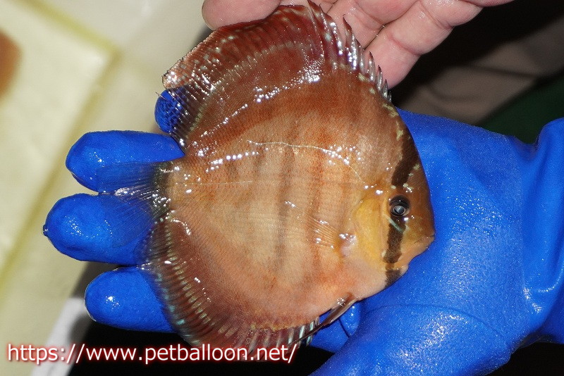 これぞ究極のワイルドクロスディスカス。アマゾン河トロンべタス水系のラーゴイリピシブラッドレッドを交配したワイルドF4個体です。イリピシ独特の赤みと美しいラウンドボディを持つ特選個体。その赤みは今後どんどん増してゆくことでしょう。