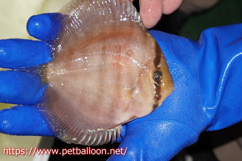 これぞ究極のワイルドクロスディスカス。アマゾン河トロンべタス水系のラーゴイリピシブラッドレッドを交配したワイルドF4個体です。イリピシ独特の赤みと美しいラウンドボディを持つ特選個体。その赤みは今後どんどん増してゆくことでしょう。