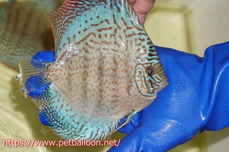 【ディスカス】【通販】サクラスーパーブルーレオパード(ハイフォーム)【個体販売】14cm(生体)マレーシア KLディスカスファーム