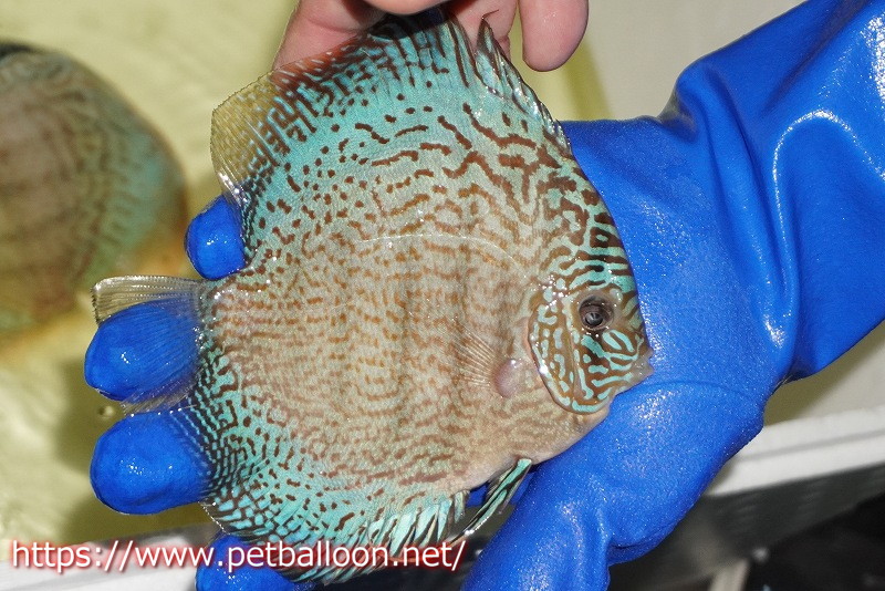 【ディスカス】【通販】サクラスーパーブルーレオパード(ハイフォーム)【個体販売】14cm(生体)マレーシア KLディスカスファーム