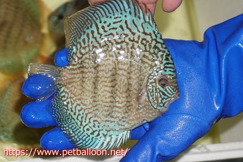 【水槽スペース確保のため大特価】【ディスカス】【通販】サクラスーパーブルーレオパード(ハイフォーム)【個体販売】14cm(生体)マレーシア KLディスカスファーム