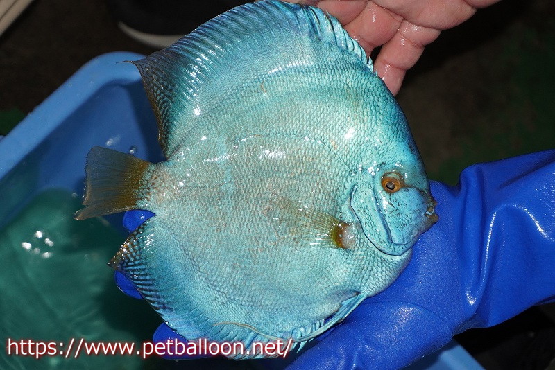 フルカラータイプのソリッド系コバルトブルーターコイズ。肉厚な体型と古き良き品種らしさを残すブラックアーチがトラディショナル感を持つ。青系ディスカスの人気種と言えます。