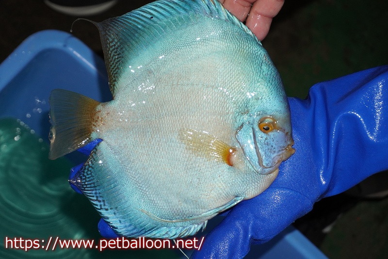 フルカラータイプのソリッド系コバルトブルーターコイズ。肉厚な体型と古き良き品種らしさを残すブラックアーチがトラディショナル感を持つ。青系ディスカスの人気種と言えます。