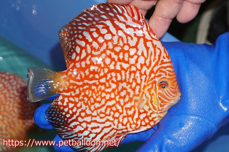 【ディスカス】【通販】スーパーレッドパールチェッカーピジョン(ハイフォーム)【個体販売】14-15cm(生体)マレーシア NAディスカスファーム [ab02-50904610]