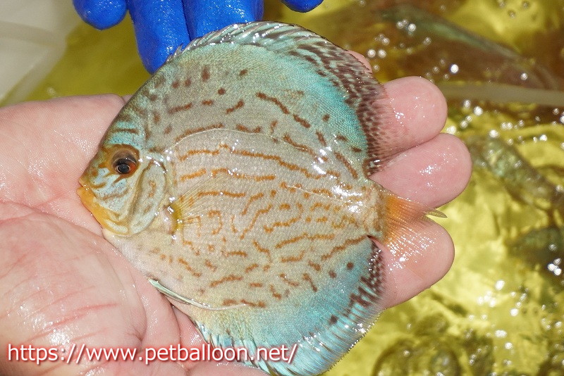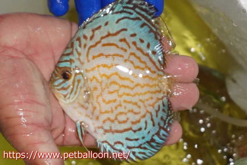 青系ディスカスの王道ブリリアントの中でもこれほど発色良くバランスが良い個体は早々おらずフォルム良し、発色良しと文句なしの個体と言えます。今後よりその青みは増しパターンも相まって変化してゆくので非常に楽しみある個体です。