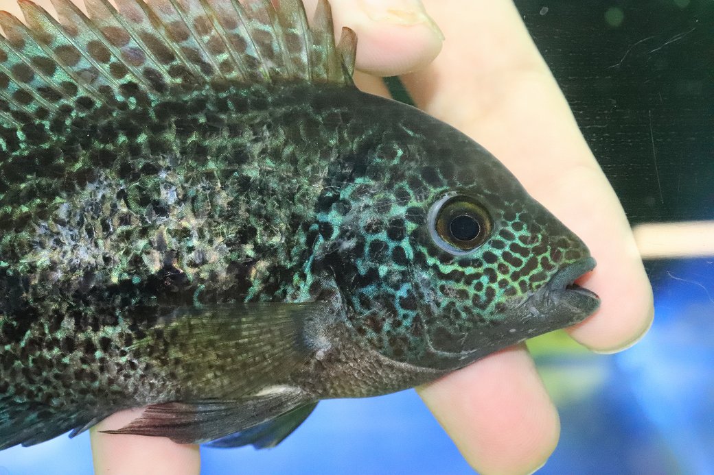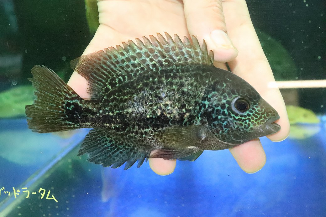 またもやテキサスシクリッドでオーダーしておりました生体がヴィエジャ グッドラータムかと思われる個体で入荷しております。ペットバルーンオリジナル便にて入荷しておりますので、この大きさでもこの価格となります。大きさがあると色の発色も強く綺麗です。混泳しておりますので、ケガ等はご了承ください。