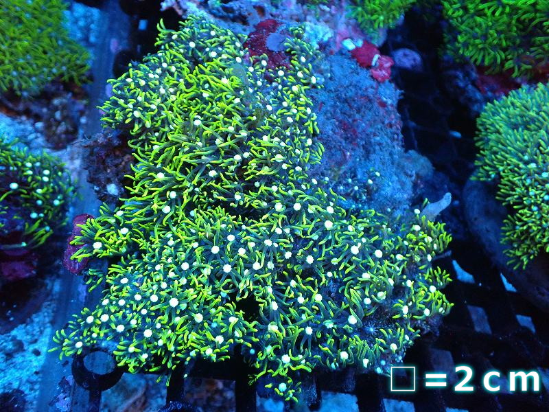 【サンゴ】【通販】スターポリプ(メタリックグリーン)MLサイズ(個体販売)No.2(生体)(サンゴ)