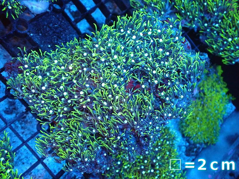 【サンゴ】【通販】スターポリプ(メタリックグリーン)MLサイズ(個体販売)No.4(生体)(サンゴ)
