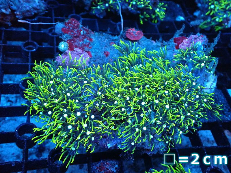 【サンゴ】【通販】スターポリプ(メタリックグリーン)Mサイズ(個体販売)No.6(生体)(サンゴ)