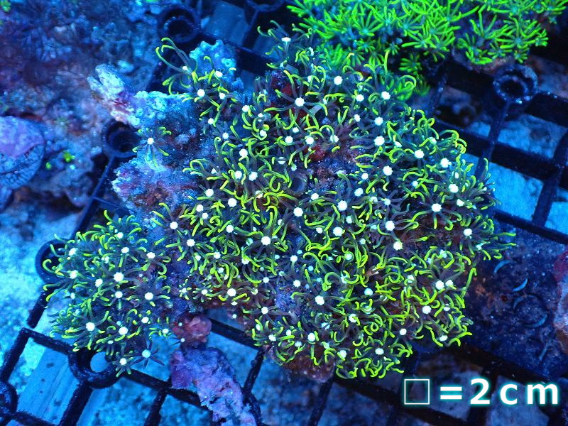 【サンゴ】【通販】スターポリプ(メタリックグリーン)SMサイズ(個体販売)No.9(生体)(サンゴ)
