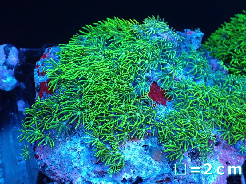 【サンゴ】【通販】スターポリプ(メタリックグリーン)Mサイズ(個体販売)No.10(生体)(サンゴ)