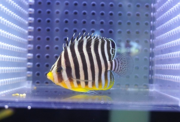 【海水魚・ヤッコ】【通販】人工飼料OK♪シマヤッコ(Mサイズ)(個体販売)(±5.5cm) No.9(生体)(海水魚)