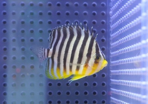 【海水魚・ヤッコ】【通販】状態良好♪シマヤッコ(Mサイズ)(個体販売)(±5.5cm) No.10(生体)(海水魚)