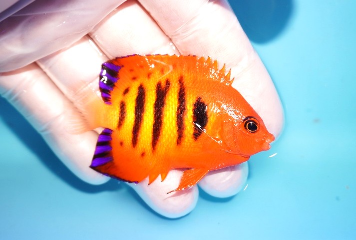 【海水魚・ヤッコ】【通販】状態良好♪【マーシャル島産】フレームエンゼル(M)(個体販売)(±6cm) No.18(生体)(海水魚)