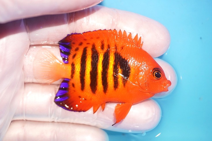 【海水魚・ヤッコ】【通販】状態良好♪【マーシャル島産】フレームエンゼル(ML)(個体販売)(±6.5-7cm) No.21(生体)(海水魚)
