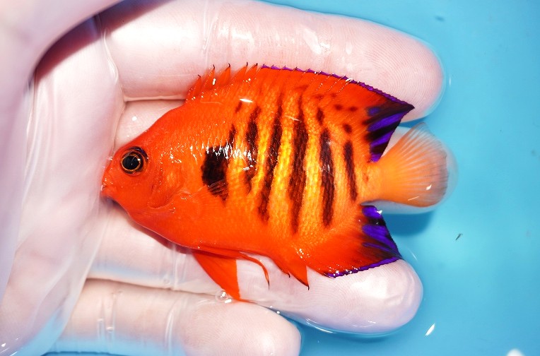 【海水魚・ヤッコ】【通販】状態良好♪【マーシャル島産】フレームエンゼル(ML)(個体販売)(±6.5-7cm) No.22(生体)(海水魚)