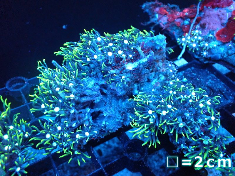 【サンゴ】【通販】スターポリプ(メタリックグリーン)SMサイズ(個体販売)(生体)(サンゴ)