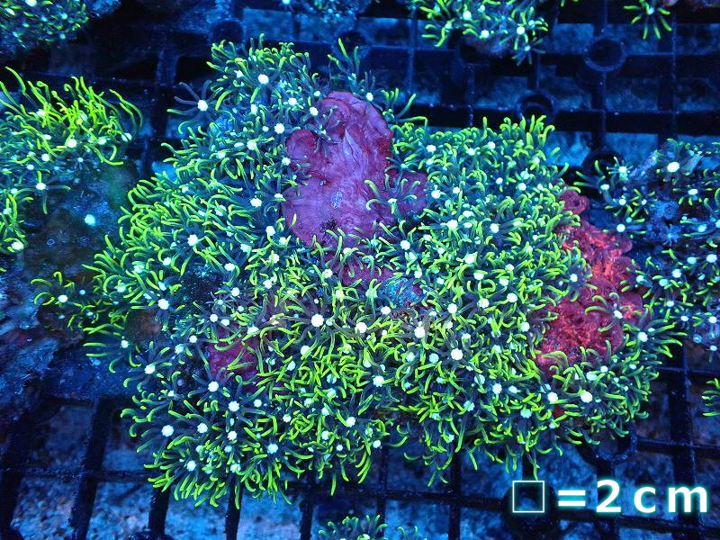【サンゴ】【通販】スターポリプ(メタリックグリーン)Mサイズ(個体販売)(生体)(サンゴ)