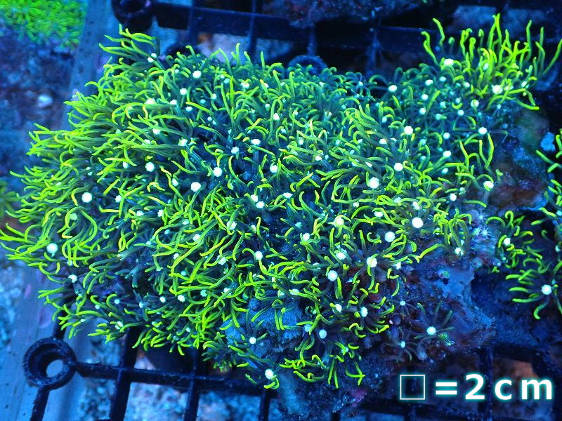 【サンゴ】【通販】スターポリプ(メタリックグリーン)Mサイズ(個体販売)(生体)(サンゴ)