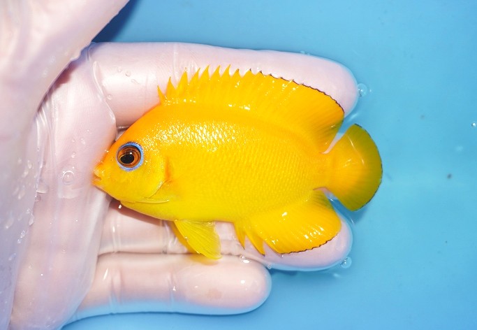 【海水魚・ヤッコ】【通販】人工飼料OK♪【マーシャル島産】レモンピール(ML)(個体販売)(±7.5cm) No.4(生体)(海水魚)