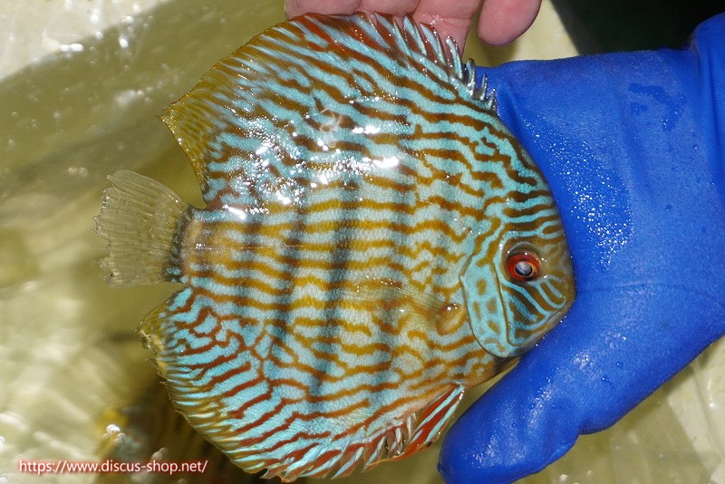 イエローベースが美しいソリッド、ソリッドセンターバー、ロイヤルブルーが混生するウラリアチャンネルに絡む有名産地。 きめ細かな鱗からの上品な発色、ロイヤル個体の明瞭なラインパターン、千差万別の個体差はワイルドディスカスの魅力を存分に持ち合わせた個体といえます。