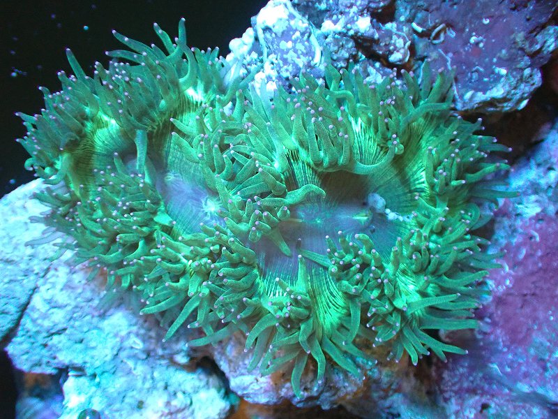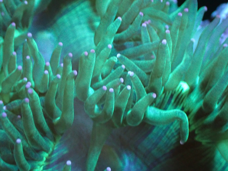 【送料無料対象商品】【サンゴ】【通販】トランペットコーラル(Metallic Green/パープルチップ)MLサイズ(個体販売)(±15cm)No.2(生体)(サンゴ)