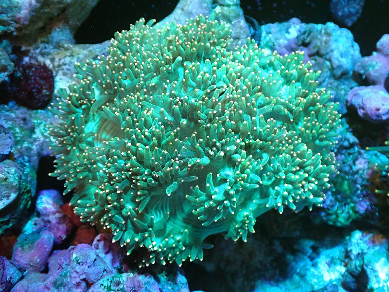 【送料無料対象商品】【サンゴ】【通販】トランペットコーラル(Metallic Green/イエローチップ)MLサイズ(個体販売)(±13cm)No.5(生体)(サンゴ)
